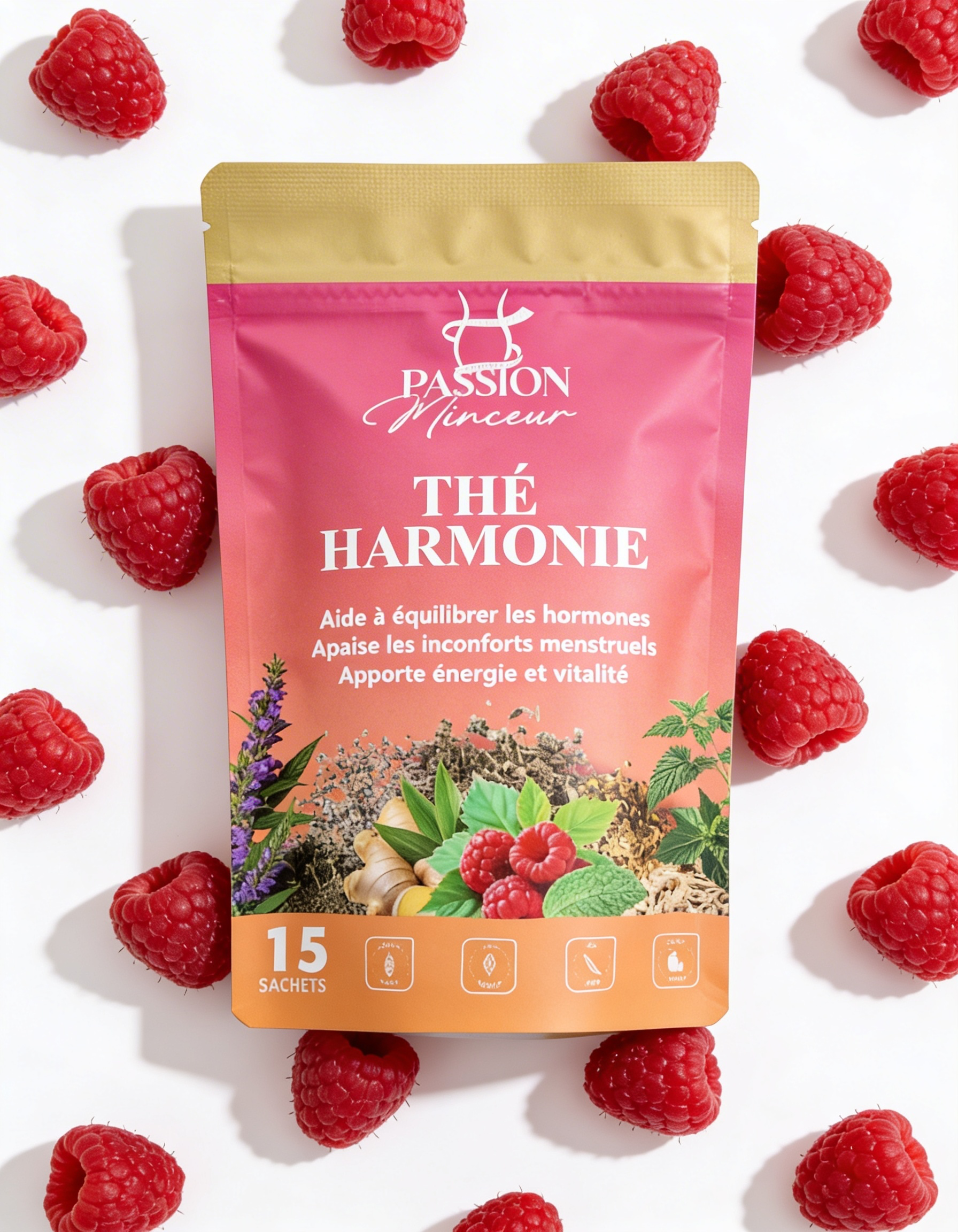 Sa composition associe des plantes reconnues pour leurs bienfaits naturels, soigneusement sélectionnées pour agir en synergie. Son goût doux et légèrement fruité en fait un moment de plaisir autant qu’un rituel bien-être. Que ce soit pendant votre cycle ou en période de fatigue, le Thé Harmonie vous accompagne pour retrouver confort et équilibre.